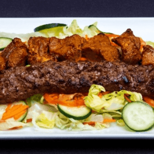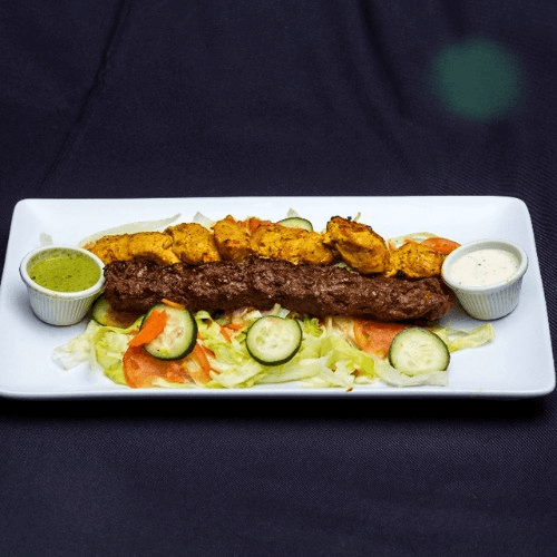 Served with three pieces of Cops, Rice, Salad, Chickpeas, Naan and sauces.