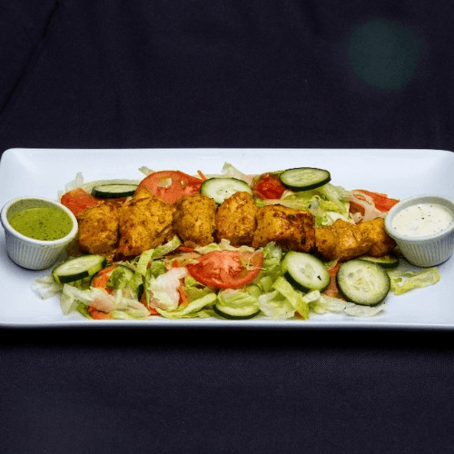 Served with Rice, Salad, Chickpeas Naan and Sauces.
